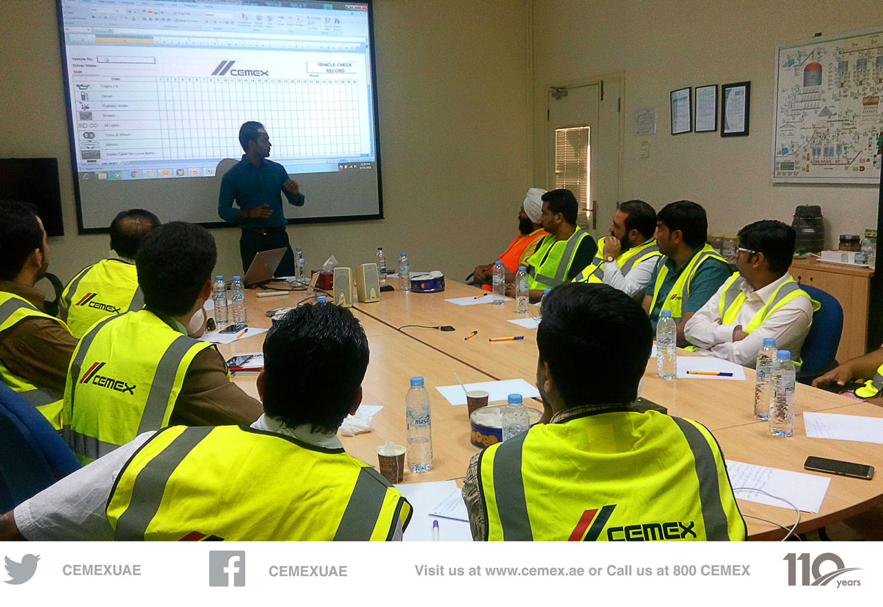 CEMEX UAE held a workshop for its contractors, attended by 17 haulers. The workshop aims to highlight the importance of practicing health & safety in their workplace & while working with CEMEX, hazards and risks involved in their work and the benefits of GPS technology.